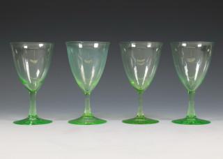 K. P. C. de Bazel (1869-1923), vier Annagroen wijnglazen, servies D, ontwerp 1917, uitvoering glasfabriek Leerdam;