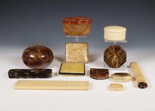 w.o. celluloid doosjes en lucite sigarettendoosje.
