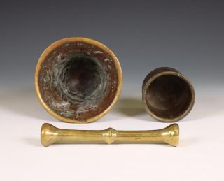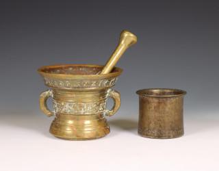 Bronzen vijzel met stamper, naar antiek model, 19e eeuw;