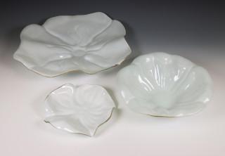 Annie Glass, drie glazen geschulpte schalen, ca. 1990;