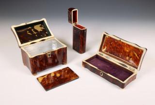 Schildpad theedoos, lepeldoos en etui, 19e eeuw