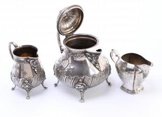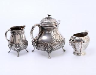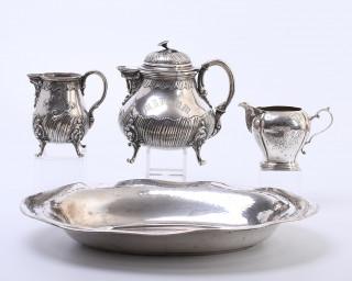 Duitsland, broodschaal, theepot, suikerpot en melkkan, samengesteld, 19e eeuw.
