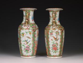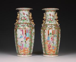 China, pair of Canton famille rose porcelain vases, 19th century,