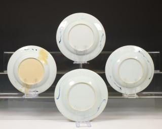 China, set of four blue and white 'tobacco leaf' plates, 18th century,
