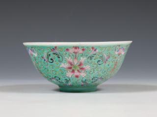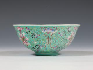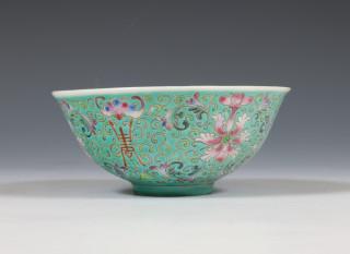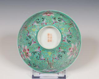 China, famille rose turquoise-ground porcelain bowl, 19th/ 20th century,