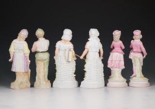 Duitsland, drie paren polychroom beschilderde biscuit vormstukken, 20e eeuw,