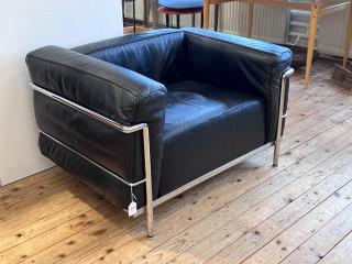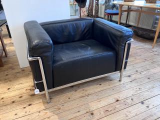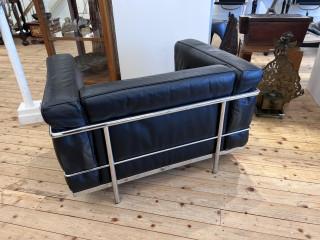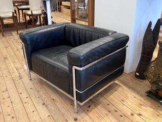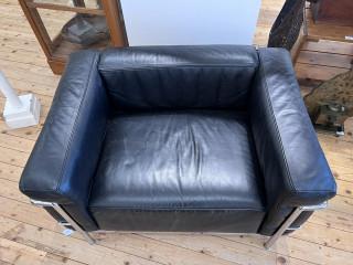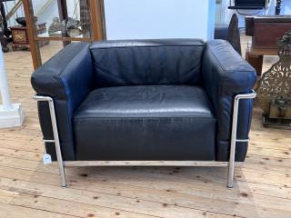 Verchroomd staal met zwart lederen kussens. Gesigneerd