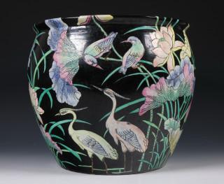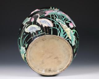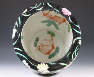 the exterior decorated with birds near a lotus-pond, the interior with fish (some wear and repair)