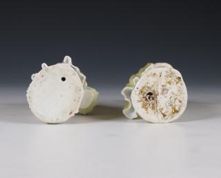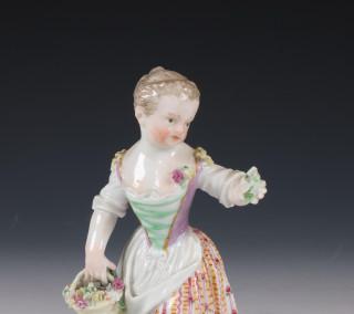 beide gemodelleerd als jonge vrouw met bloemenmand (enkele chips aan handen en haar, een voet gerestaureerd)