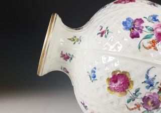 baustervorm, gemodelleerd met mandmotief en beschilderd met bloemen (een hals gerestaureerd)