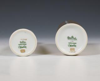 beide met decoratieve vergulde decoratie, onderzijdes gemerkt