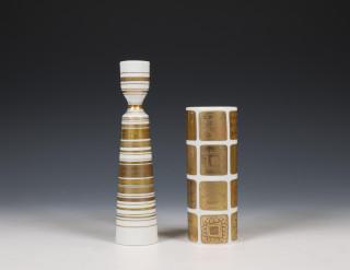 Rosenthal Studio Linie, deels verguld porseleinen vaasje en kandelaar, ontwerp Bjørn Wiinblad, ca. 1970,