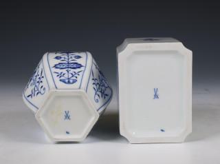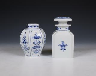 Meissen, twee porseleinen "Zwiebelmuster" theebussen, 20e eeuw,