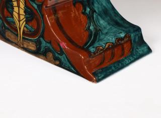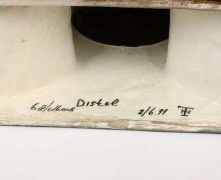 Uitgevoerd met polychrome gestileerde schildering op bruin fond. Gemerkt binnenzijde 68/c/back Distel, 2/6/99 en initiaal TH. (gerestaureerd, beschadigd)