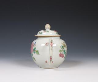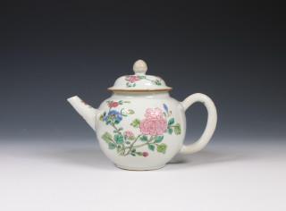 painted to one side with peony and to the other side with chrysanthemum (finial restored, small chips)