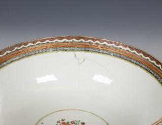 each painted with the Lowestoft pattern of scattered flowers and floral bands (one restored, each with hairlines and chips)