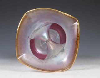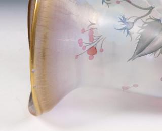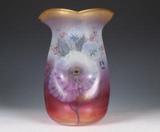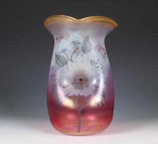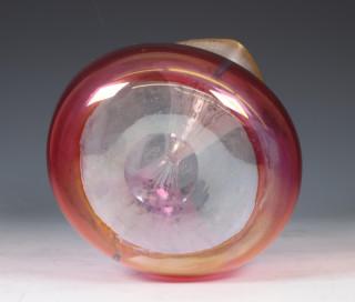 uitgevoerd door Glashütte Eisch, de rood-paarse vaas gedecoreerd met bloemen, onderzijde gesigneerd (enkele randchipjes)
