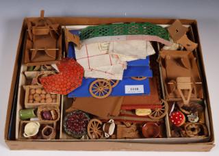 Speelgoed miniatuur marktkraam in doos, ca. 1900;