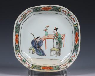 China, square famille verte porcelain dish, Kangxi period (1662-1722),