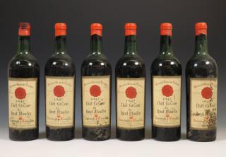 Zes flessen rode wijn; Chât. La Tour du haut Moulin, 1945;