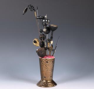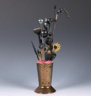 w.b. Art Deco exemplaren. Opgeprikt in aardewerk houder.