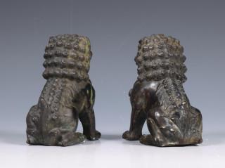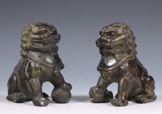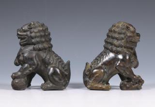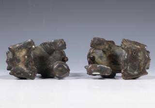 modelled in mirror image, one holding a brocade ball under its paw and the other one a cub (some wear)