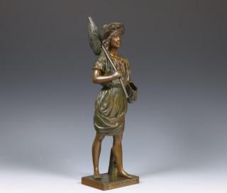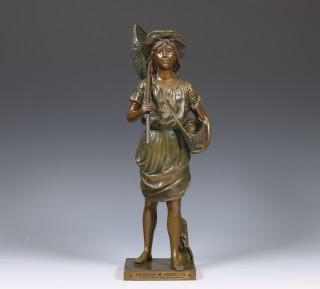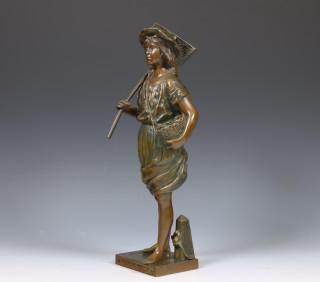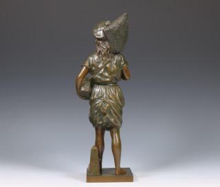 Jean Garnier (1853-1910), bruin/groen gepatineerd bronzen sculptuur 'Pecheuse de Crevettes';