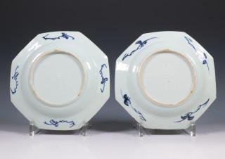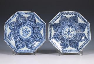 China, pair of blue and white porcelain 'lotus' plates, 18th century,