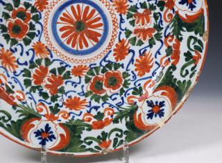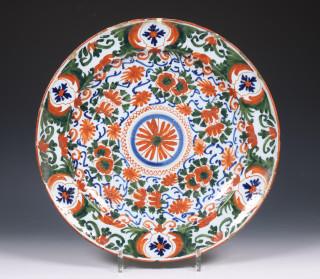 Delft, aardewerk polychroom geschilderde schotel, 18e eeuw;