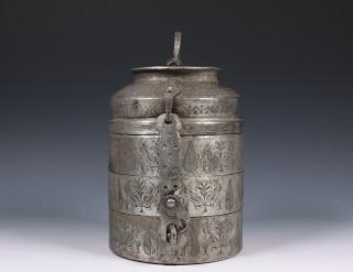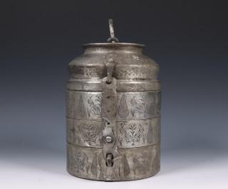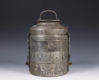 China, engraved metal three-tiered food container, 20th century,