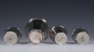 klekvormig met golvende bandversiering, mt. JSB en ongeïdentificeerde stempel, bekers gelijkend, gemerkt alle met 12 en niet geïdentificeerde keuren,