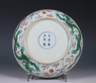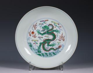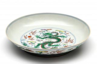 China, doucai porcelain 'dragon' dish, Yongzheng six-character mark and of the period (1723-1735),