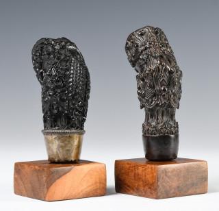 the first item shows an abstracted elephant head in a foliage guise, some details open-worked, silver selut, the other shows Ganesha also in a floral guise, vertical ovals at the foot.