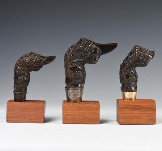 for the largest provenance: Hans Witsenburg, The Hague, 1996; Christies Amsterdam, 25-10-1995, part lot 334, collection Leendert van Lier, Blaricum and Publ., Zonneveld, Albert van, 2001, ' Traditional weapons of the Indonesian Archipelago', page 66, ill. 239. The second hilt publ.: Groneman, Isaac, 2009 ' The Javanese Kris', p. 180, inv. nr. 120. Provenance third item: Nefertari Tabak, Bussum, 1999.