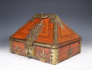 India, hardhouten Kerala juwelen kist, 19e/20e eeuw;