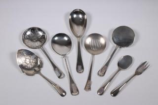 Collectie van acht opdienlepels en scheppen, 19e en 20e eeuw,