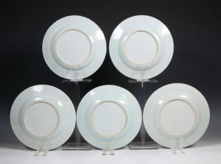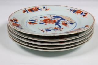 decorated with flowers (one plate with hairline, all with small rim chips and nicks)