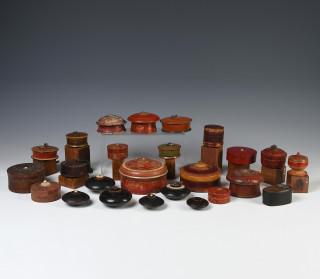 India, Rajasthan, a collection of various lidded boxes;