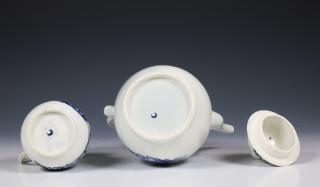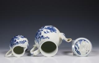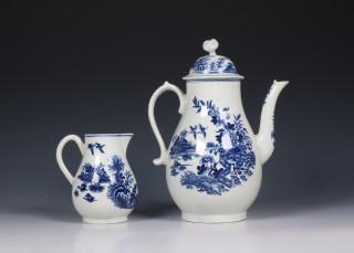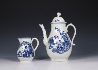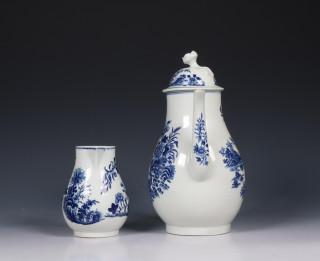 Worcester blauw wit koffiekan en melkkan 18e eeuw,