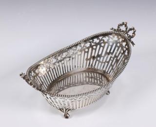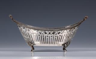 ovaal ajour model staand op vier pootjes, geen meesterteken aangetroffen, 2e gehalte,