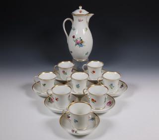 KPM, porseleinen koffiepot en acht kop en schotels, circa 1900,