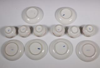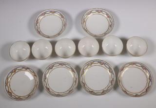 Noyon, set van zes porseleinen kop en schotels, circa 1800,