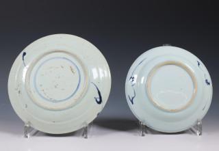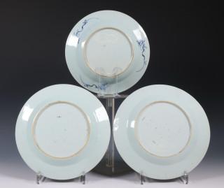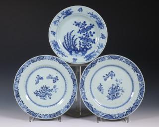 China, five various blue and white porcelain plates, 18th century,