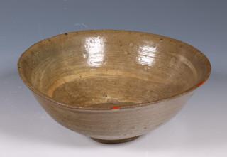 Korea, celadon-glazed earthenware bowl with slib-decoration, early Joseon dynasty (1392-1897),