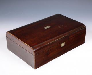 Bruin gelakt houten naaikist, ca. 1900;
