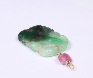 China, jadeite pendant with seed pearls and pink tourmaline bead,