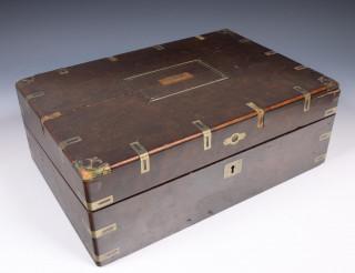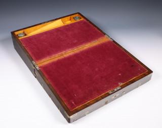 Notenhouten schrijfkist met nikkelen beslag, ca. 1900;