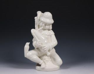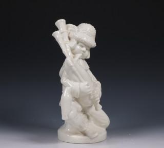 Porzellanfabrik Passau (1840-1942), wit porseleinen vormstuk, 'doedelzakspeler', ontwerp Jules Werson (1884-1967), ca. 1925;