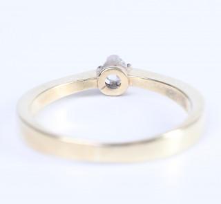 14 k. Gold solitaire ring set with an old brilliant cut diamond of approx. 0.10 ct, chip