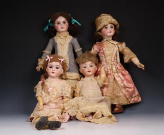Vier antieke poppen met porseleinen koppen, ca. 1900;
